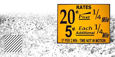 Taxi memorabilia and urban taxi history in a decal.